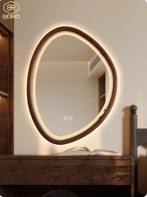 Gương hình giọt nước khung gỗ có đèn led CNC40-LEDVIEN, kích thước 60*80cm