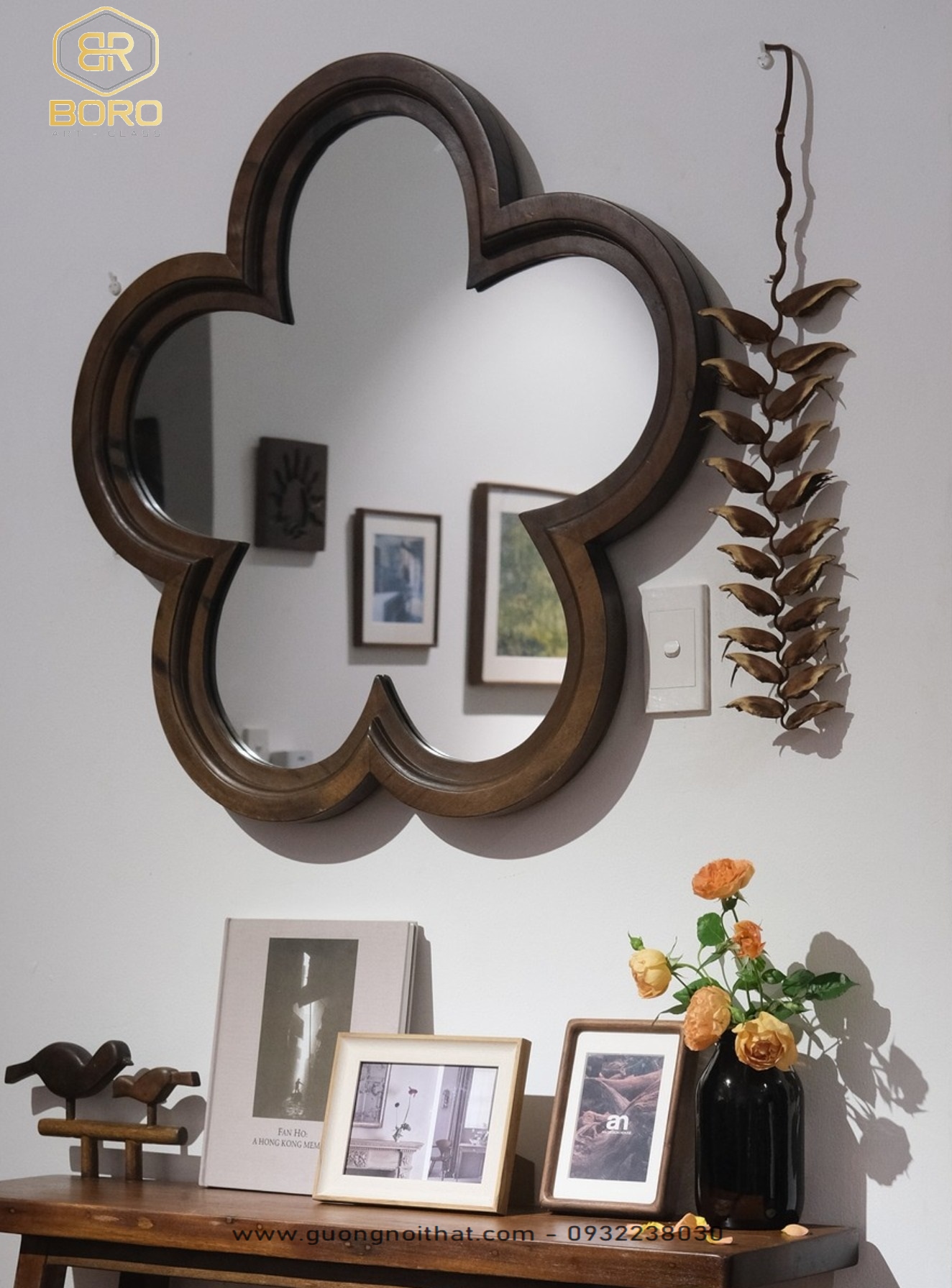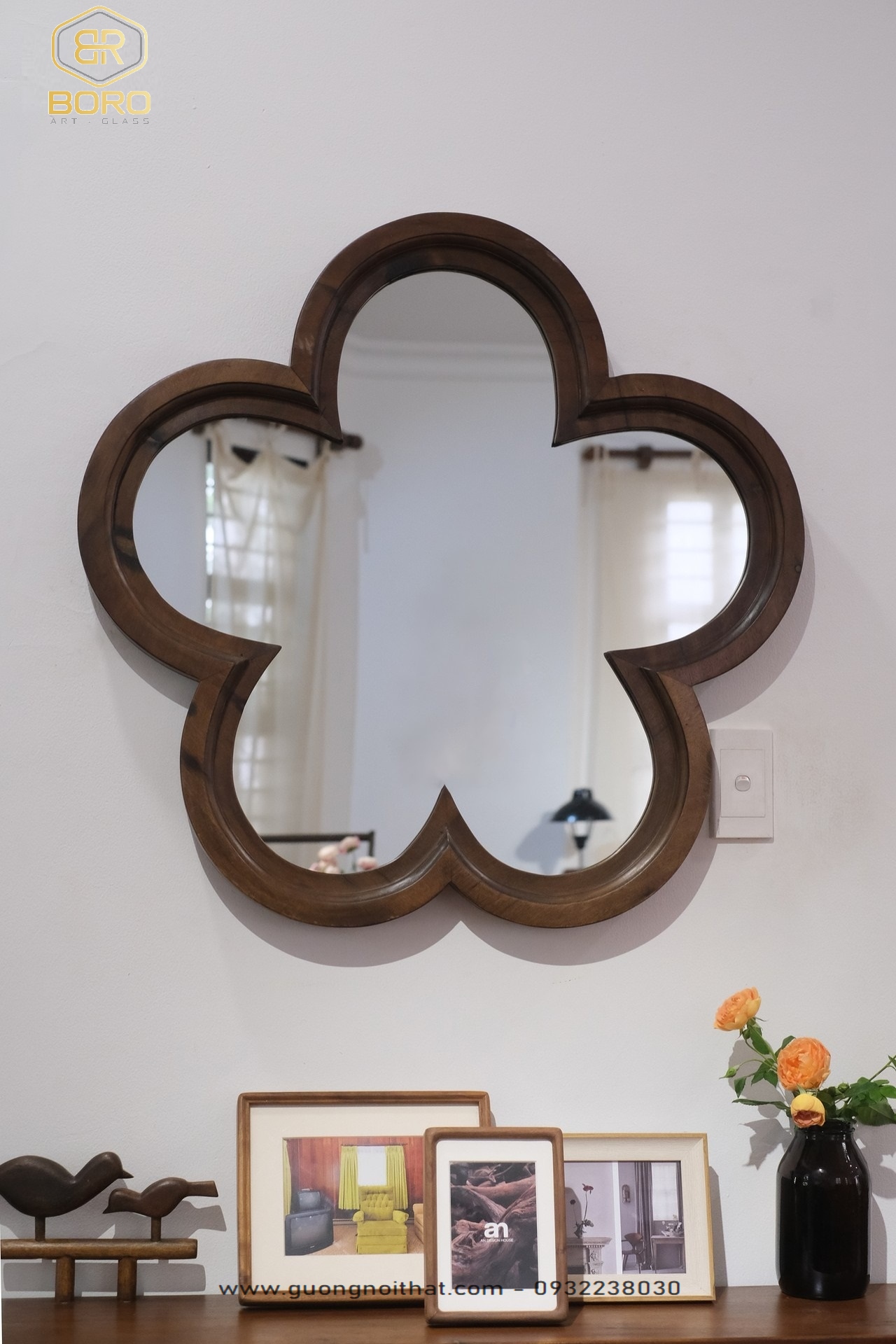 Gương hoa mai, Gương trang trí, gương nhà tắm, Gương khung gỗ