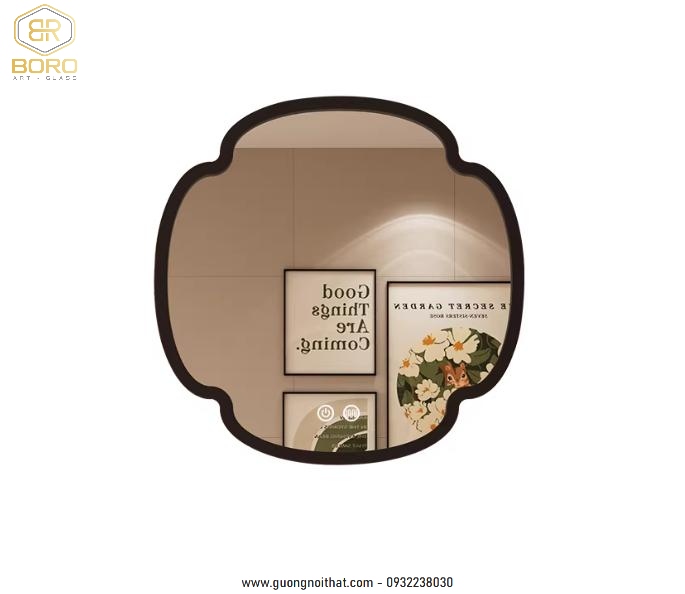 Gương khung gỗ kết hợp led thông minh hình cỏ bốn lá độc đáo CNC173-LED, kích thước 70*70 cm