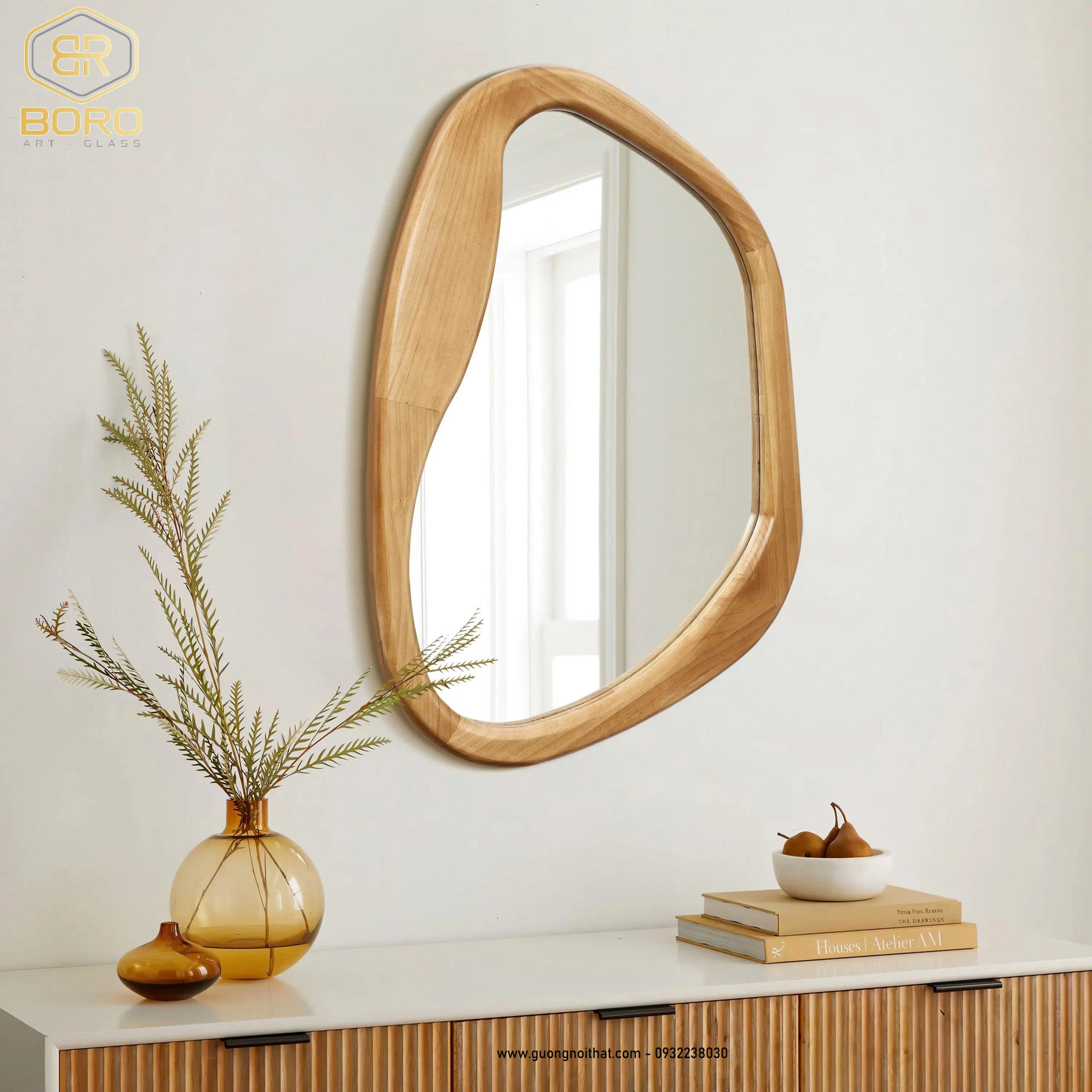 Gương nghệ thuật hình dạng bất thường khung gỗ CNC148, kích thước 60*80cm