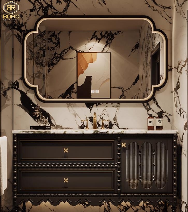 Gương trang trí phòng khách, Gương treo tường Khách sạn,Gương phong cách Inodochine có đèn led
