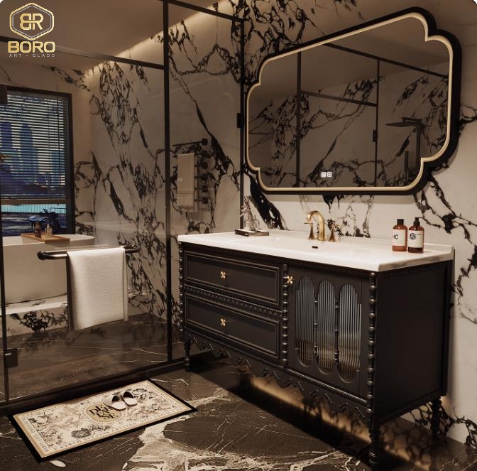 Chất liệu: Gương phôi Bỉ, khung gỗ tự nhiên, cắt CNC