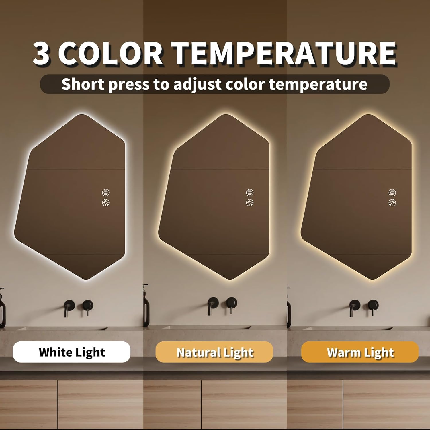 Gương phòng tắm LED, Gương trang điểm, Gương đèn led chống sương mù với 3 màu đèn có thể điều chỉnh độ sáng LED039, KT 60*90cm