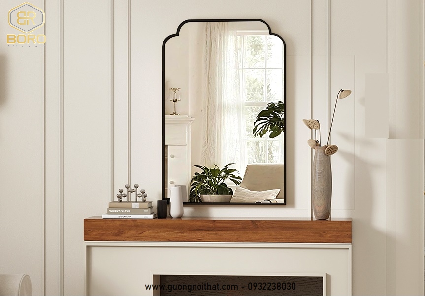 Gương phòng tắm màu đen, Gương hình chữ nhật góc bo tròn NHOMBR009, KT 60*90 cm