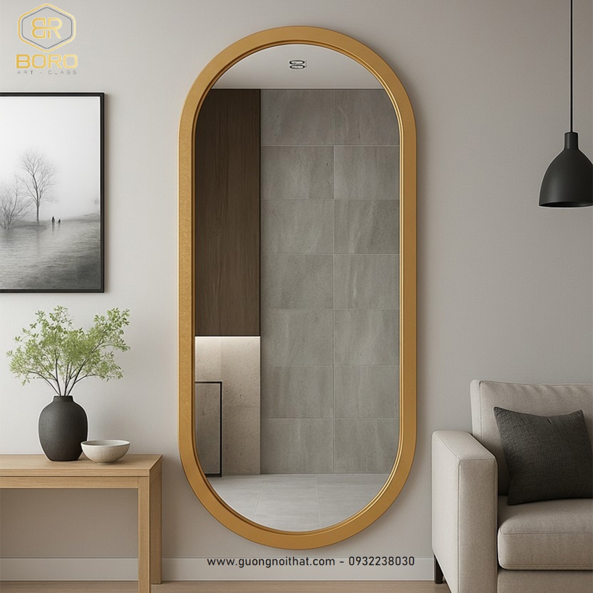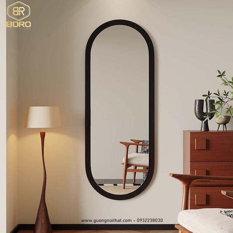 Gương soi toàn thân dáng oval khung gỗ KGBR90, KT theo yêu cầu
