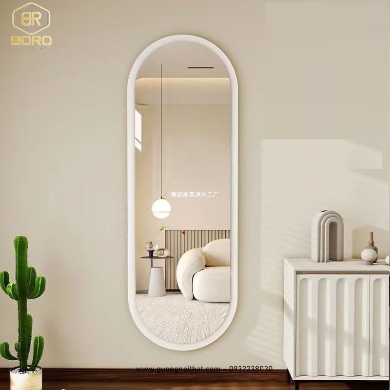 Gương khung gỗ trang trí, Gương soi toàn thân dáng oval, gương nhà tắm, Gương soi toàn thân