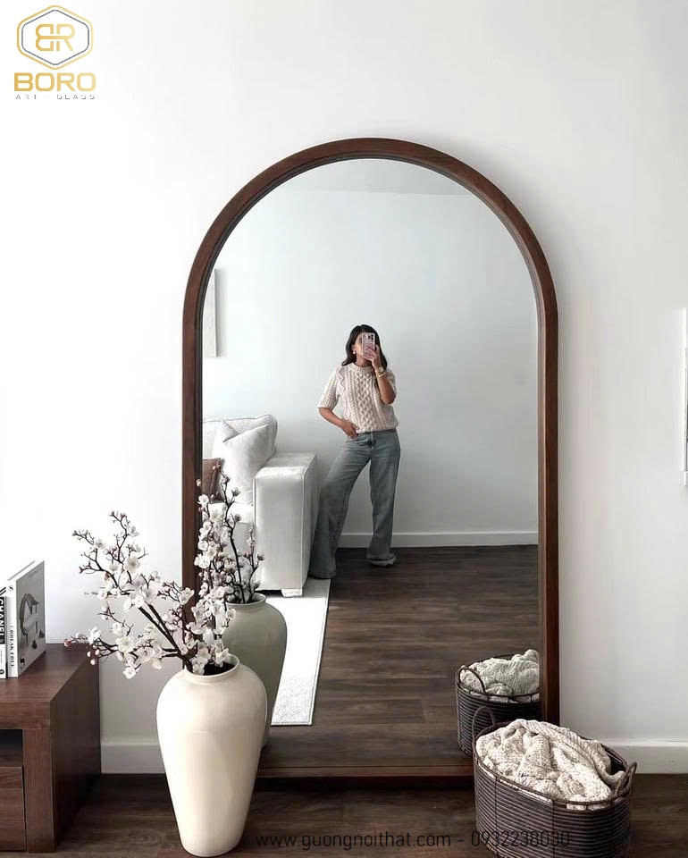 Gương soi toàn thân dáng vòm khung gỗ KGBR91, KT theo yêu cầu