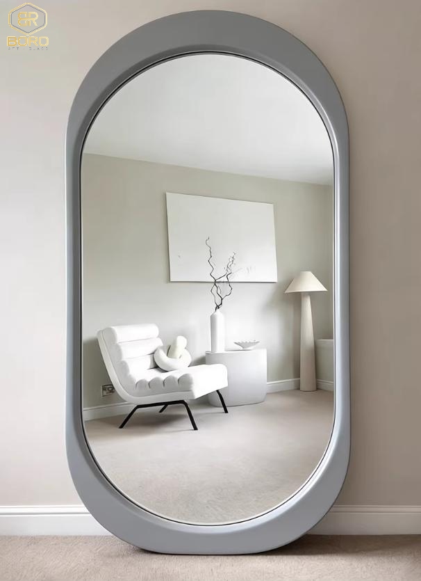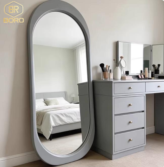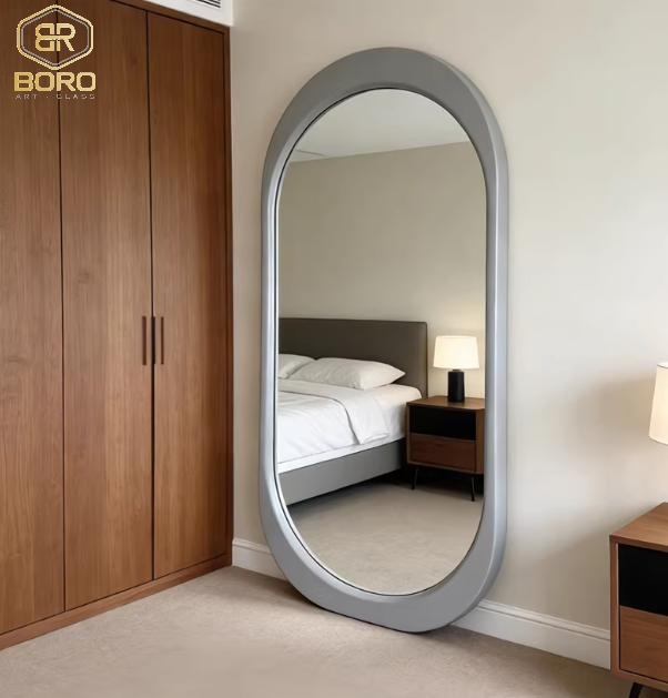Gương soi toàn thân hình dạng bất đối xứng, gương hiện đại, gương nhà tắm, Khung gương gỗ, Gương dài toàn thân