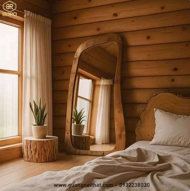 Gương khung gỗ , gương hiện đại, Gương đứng toàn thân kiểu Wabi-sabi, Khung gương gỗ, Gương dài toàn thân