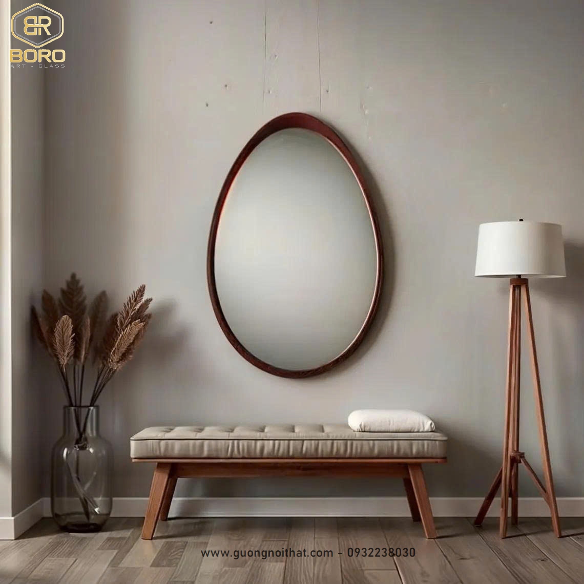 Gương trang điểm, Gương hình quả trứng, gương khung gỗ