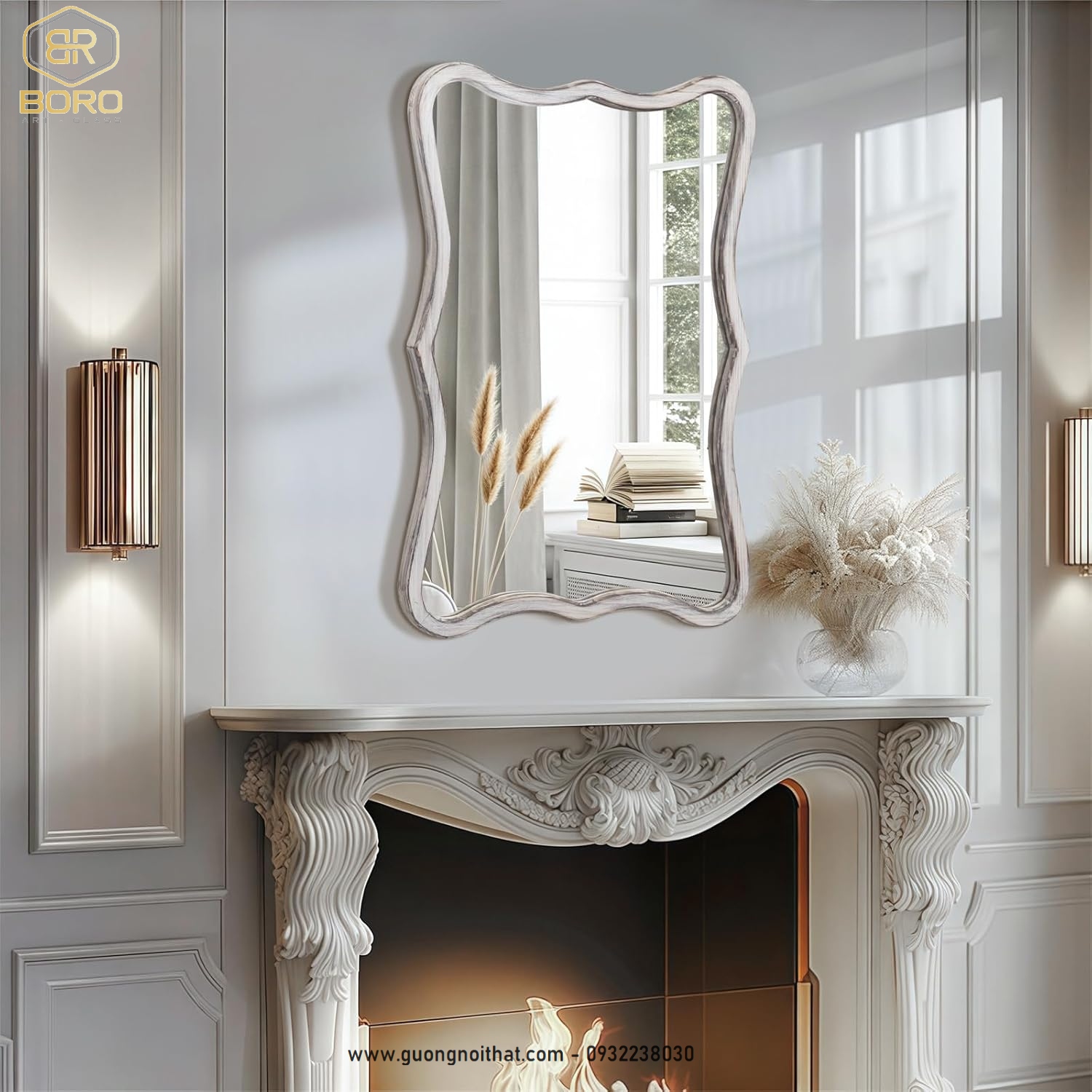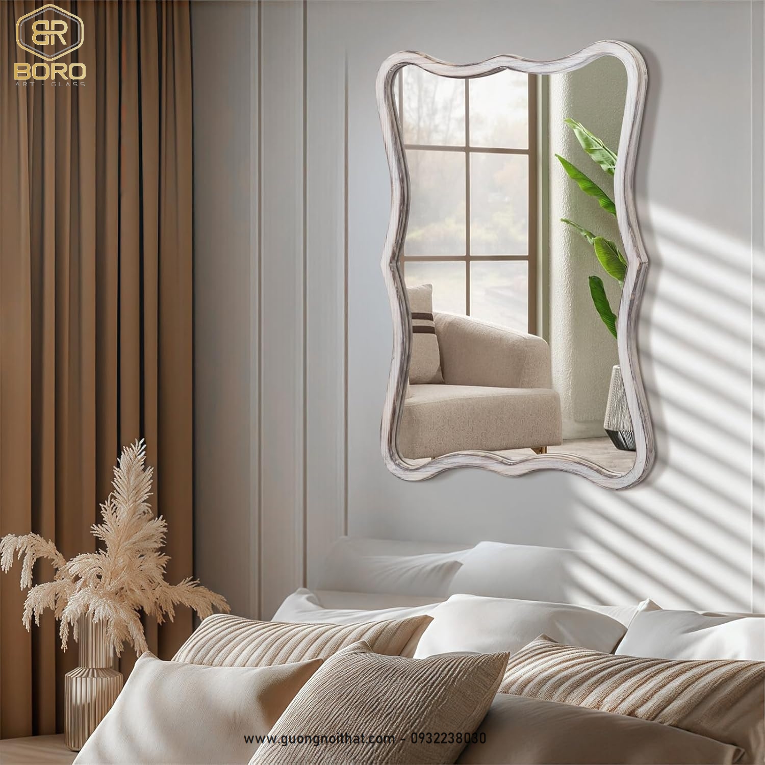 Gương phong cách inodochine, gương nhà tắm, Gương khung gỗ, Gương trang điểm, gương treo tường
