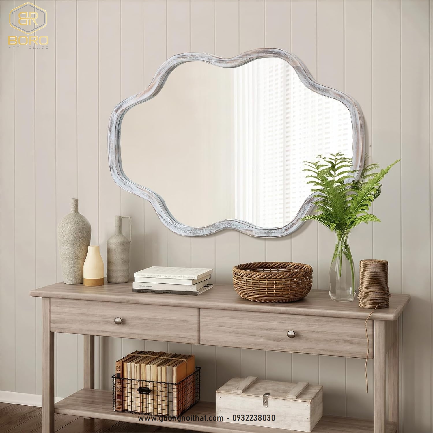 Gương trang điểm hình đám mây không đều cho phòng tắm, phòng ngủ, phòng khách, lối vào CNC163, kích thước 60*90 cm