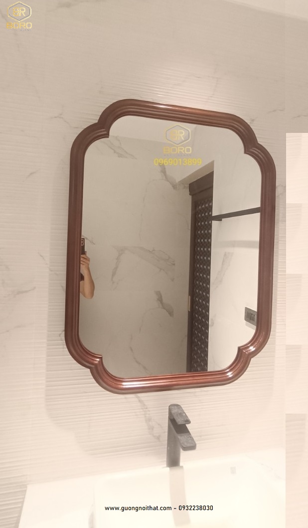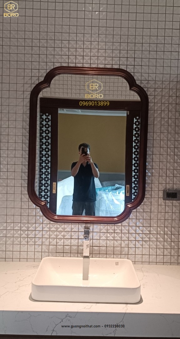 Gương trang trí, gương khung gỗ tự nhiên bản soi CNC160, kích thước 60*90cm