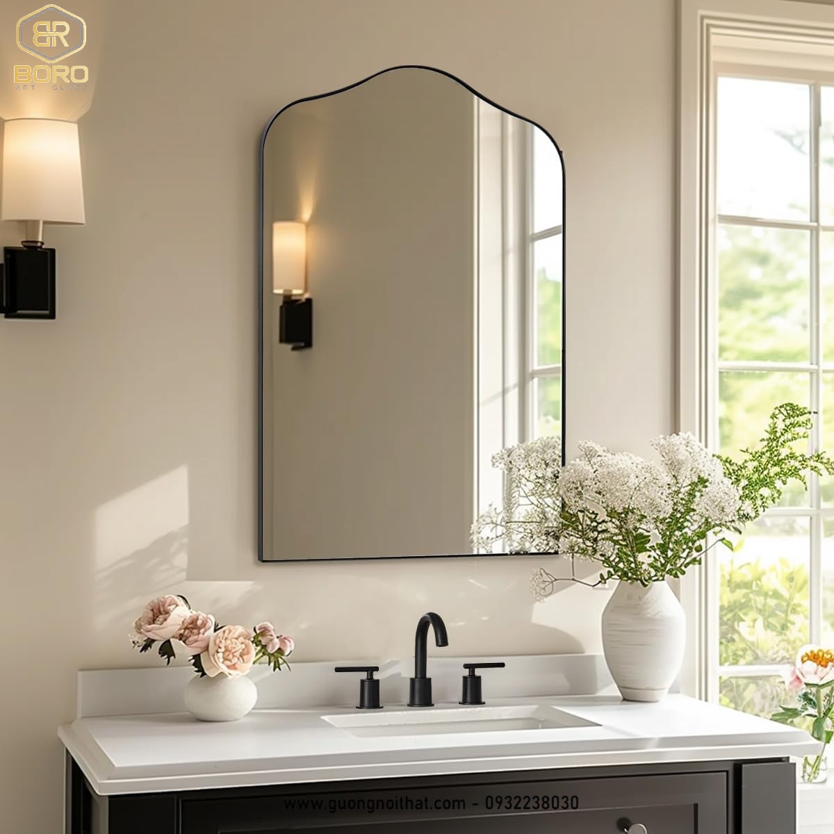Gương trang trí, gương nhà tắm phong cách Bắc Âu khung inox INOXBR179, KT 60*95cm