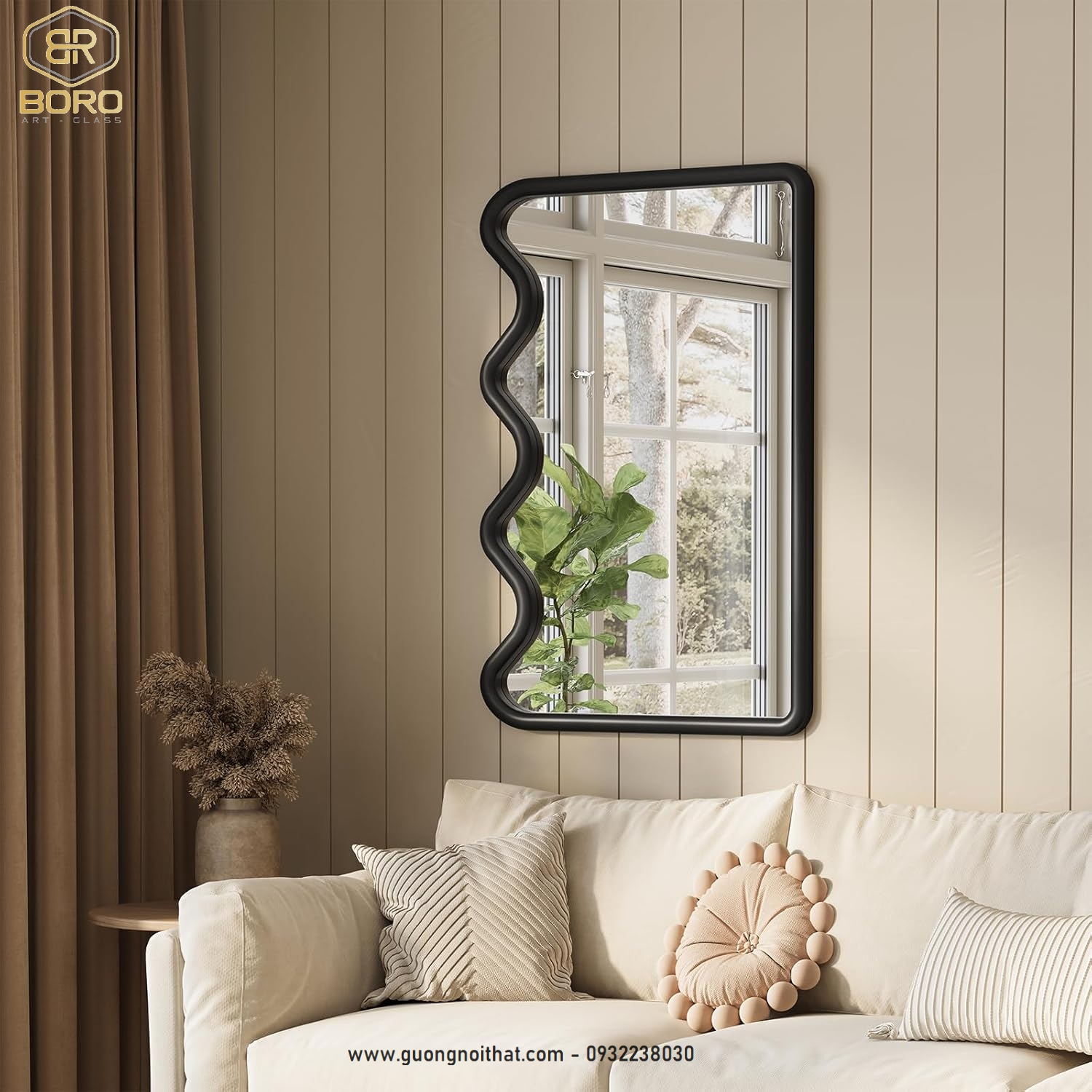 Gương treo tường gợn sóng, gương trang trí, gương trang điểm CNC164, kích thước 60*90 cm