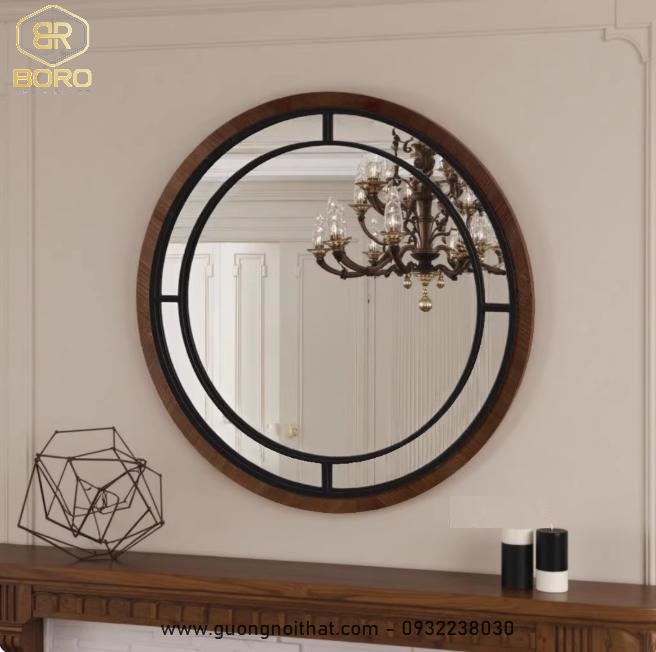Gương tròn treo tường kiểu cổ điển dùng cho phòng tắm, phòng ngủ, phòng trang điểm, phòng khách CNC169, kích thước 60*60 cm